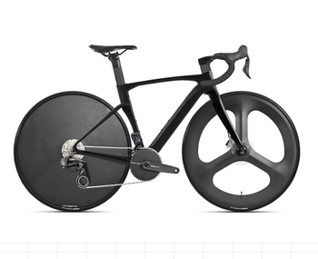 אופני קרבון עם גלגלי 3 חישורים וגלגלי דיסק מסוג Cyclone
